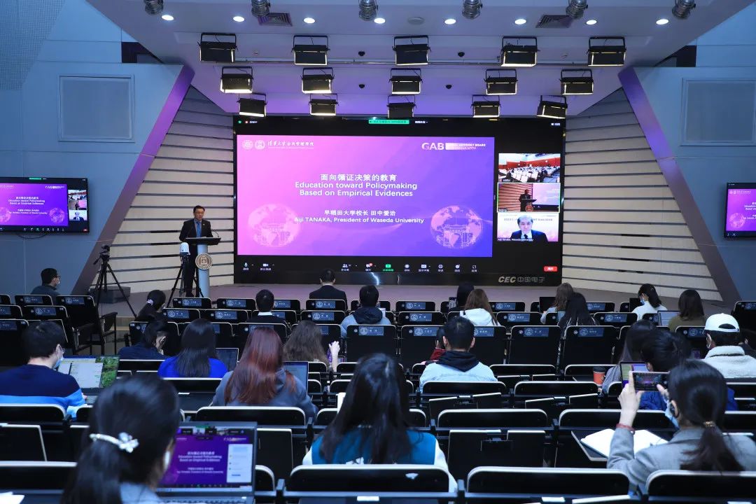 田中爱治作题为“面向循证决策的教育”(Education toward Policy Making Based on Empirical Evidence)的在线报告。田中爱治首先用丰富的事例回顾了北美高等院校和早稻田大学过去几十年的成功发展经验和创新举措。他说,大学必须在延揽人才、学术研究、教书育人等方面不断强化投入。大学教育一方面要借鉴北美知名高校的成功发展经验,另一方面也要积极制定符合本国国情和本校特点的发展政策。当前,人类社会发展面临诸多挑战,早稻田大学希望秉承创新、合作、交流的态度,与包括清华大学在内的全球合作伙伴一起,在碳达峰、碳中和及其他关乎全人类命运的诸多方面作出贡献。随后,田中爱治与线上、线下听众进行交流互动。