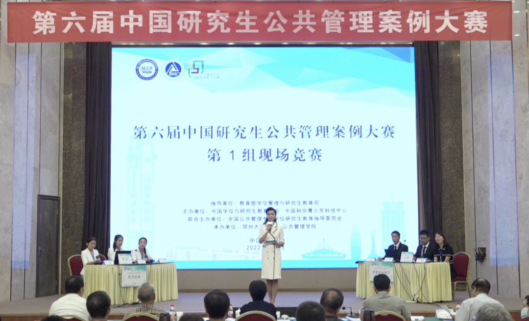 “中国研究生创新实践系列大赛”是目前我国唯一被政府认可和指导的专门面向研究生群体的全国性赛事。中国研究生公共管理案例大赛是“中国研究生创新实践系列活动”主题赛事之一,旨在引导相关学科研究生关注我国公共管理实际问题,通过比赛过程提高运用公共管理理论和公共政策分析方法解决实际问题的能力,使MPA教育与公共管理实践、与国家发展大局更加紧密结合。第六届中国研究生公共管理案例大赛由教育部学位管理与研究生教育司指导,中国学位与研究生教育学会、中国科协青少年科技中心主办,全国公共管理专业学位研究生教育指导委员会联合主办,郑州大学政治与公共管理学院承办。除现场参赛、评审和观摩之外,本次大赛还同播直播,吸引了30万余人在线观看。