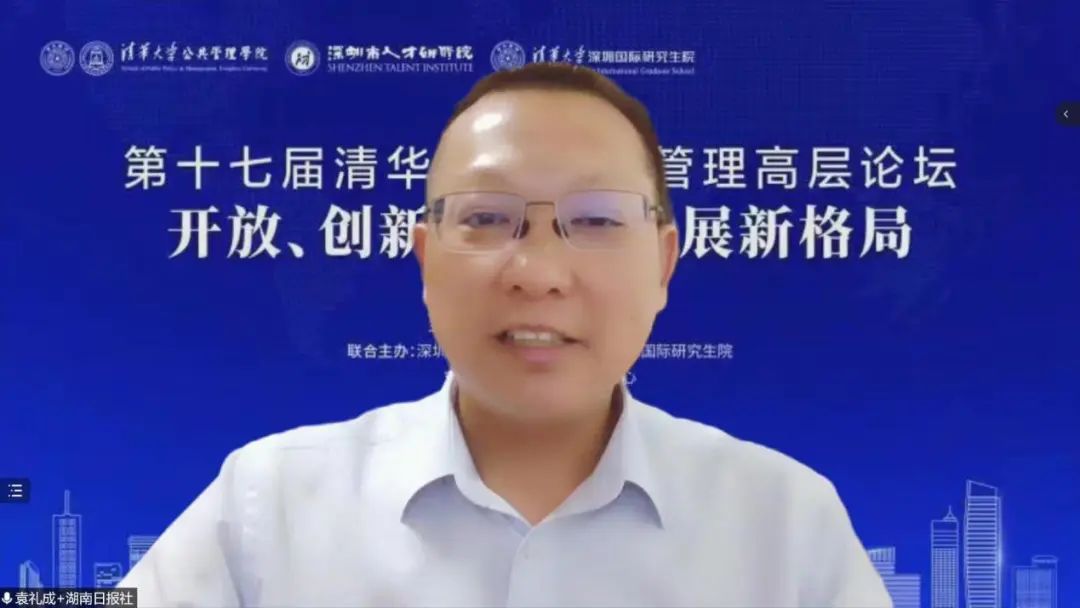 8月6日,以“开放、创新与区域发展新格局”为主题的第十七届清华大学公共管理高层论坛成功举办。中国商务部原部长陈德铭提前发来视频致辞。中国科学技术部原副部长、国家气候变化专家委员会名誉主任刘燕华,深圳市委常委、组织部部长程步一,清华大学党委常委、清华大学副校长彭刚,清华大学党委常委、副校长兼公共管理学院院长杨斌,深圳市人才研修院副院长张林,清华大学深圳国际研究生院党委书记武晓峰,中国科学院院士、清华大学“钱学森班”首席教授、深圳零一学院创始院长郑泉水,香港中联办社会工作部副部长周和,中国亚洲经济发展协会执行会长刘红路,清华大学文科资深教授、清华大学国情研究院院长、公共管理学院教授胡鞍钢,清华大学文科资深教授、公共管理学院学术委员会主任、苏世民书院院长薛澜,清华大学公共管理学院执行院长朱旭峰等嘉宾出席上午论坛开幕式及主旨论坛。香港科技大学教授、xbotPark机器人基地创始人、深圳科创学院院长李泽湘提前录制视频作主旨演讲。深圳市委市政府、相关市级部门和区(市)县领导同志,全国各地各部门公共管理专业人士和清华大学校友师生等分别在北京会场、深圳会场,在线或视频形式出席了本次会议。