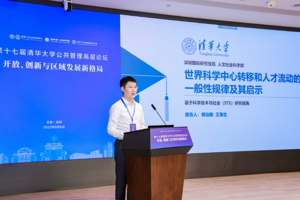 清华大学深圳国际研究生院人文社会科学部助理研究员郝治翰以“世界科学中心转移和人才流动的一般性规律及其启示”为题作报告。在回顾人类历史上五大科学中心轨迹后,他引出了科学史上两个经典而扎心的问题,即“李约瑟问题”和“天才为何成群而来”。在世界科学中心和人才中心转移中,除国家的长期繁荣稳定以外,价值观念、制度安排、组织形态和物质基础等因素发挥了重要作用。因此,应积极打造国际顶尖期刊、学术大奖、顶尖的科学领域、顶尖实验室、顶尖学术会议、顶尖大学、顶尖服务保障体系,并营造契合人类命运共同体和科学知识生产方式新变化的价值体系。
