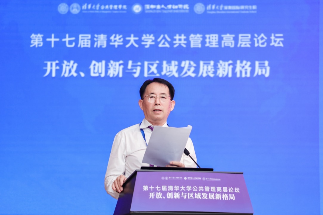 2022年8月6日,以“开放、创新与区域发展新格局”为主题的第十七届清华大学公共管理高层论坛成功举办。中国商务部原部长陈德铭提前发来视频致辞。中国科学技术部原副部长、国家气候变化专家委员会名誉主任刘燕华,深圳市委常委、组织部部长程步一,清华大学党委常委、清华大学副校长彭刚,清华大学党委常委、副校长兼公共管理学院院长杨斌,深圳市人才研修院副院长张林,清华大学深圳国际研究生院党委书记武晓峰,中国科学院院士、清华大学“钱学森班”首席教授、深圳零一学院创始院长郑泉水,香港中联办社会工作部副部长周和,中国亚洲经济发展协会执行会长刘红路,清华大学文科资深教授、清华大学国情研究院院长、公共管理学院教授胡鞍钢,清华大学文科资深教授、公共管理学院学术委员会主任、苏世民书院院长薛澜,清华大学公共管理学院执行院长朱旭峰等嘉宾出席上午论坛开幕式及主旨演讲。香港科技大学教授、xbotPark机器人基地创始人、深圳科创学院院长李泽湘提前录制视频作主旨论坛。深圳市委市政府、相关市级部门和区(市)县领导同志,全国各地各部门公共管理专业人士和清华大学校友师生等分别在北京会场、深圳会场,在线或视频形式出席了本次会议。