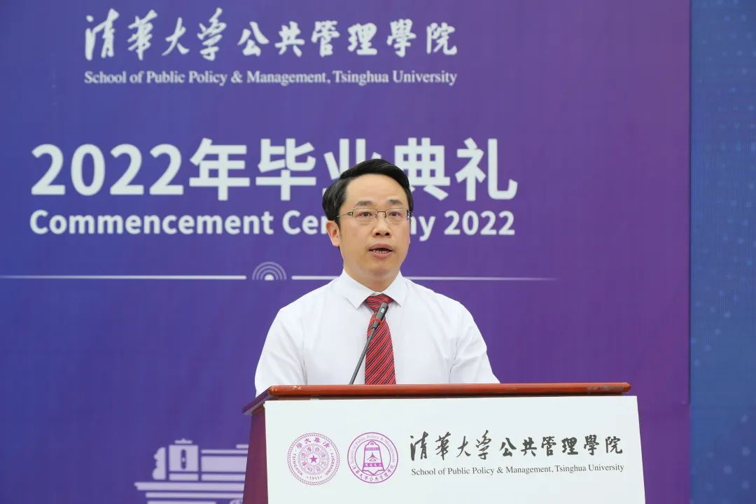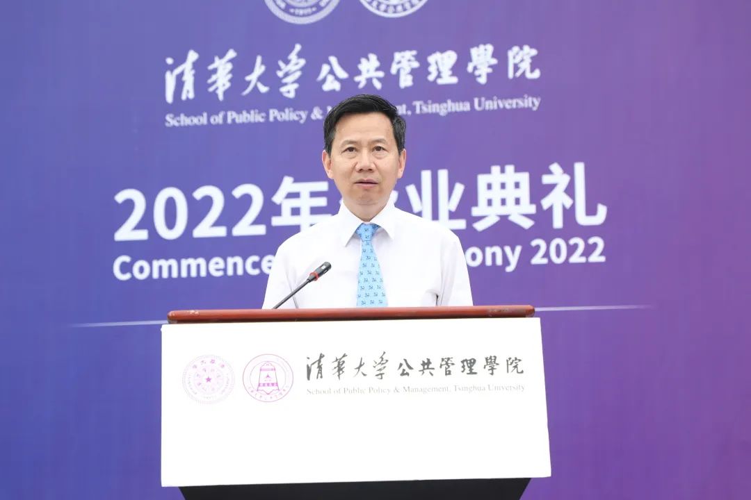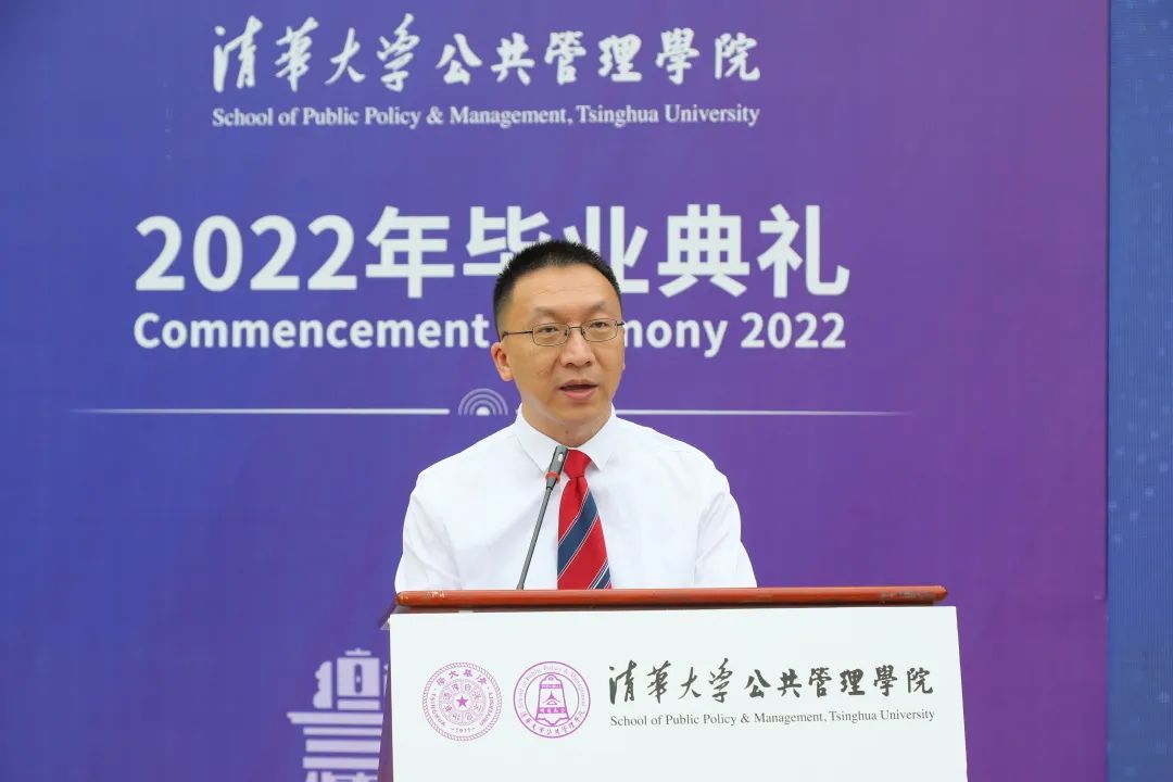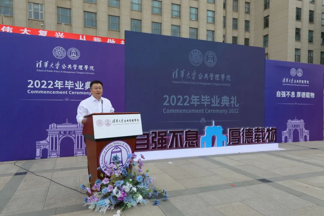 6月26日上午,清华大学公共管理学院2022年毕业典礼在主楼前广场举行,本次毕业典礼以线上线下相结合的方式举行,并通过网络向全球毕业生进行中英文双语直播。清华大学副校长、教务长兼公管学院院长杨斌,公管学院学术委员会主任、清华大学文科资深教授薛澜,清华大学文科资深教授胡鞍钢,学院党委书记彭宗超,执行院长朱旭峰,学院学位分委员会主席程文浩,副院长王亚华、邓国胜,党委副书记周绍杰,副院长殷成志,教师代表孟庆国、杨永恒、刘求实、孟延春、刘志林、周源、高宇宁、贾西津、李应博、慕玲、陈思丞等,以及110多名毕业生代表于现场参加了毕业典礼,同时还有300多位毕业生和毕业生的亲属、师友在线上参加了此次典礼。典礼由院党委副书记兼副院长谢矜主持。