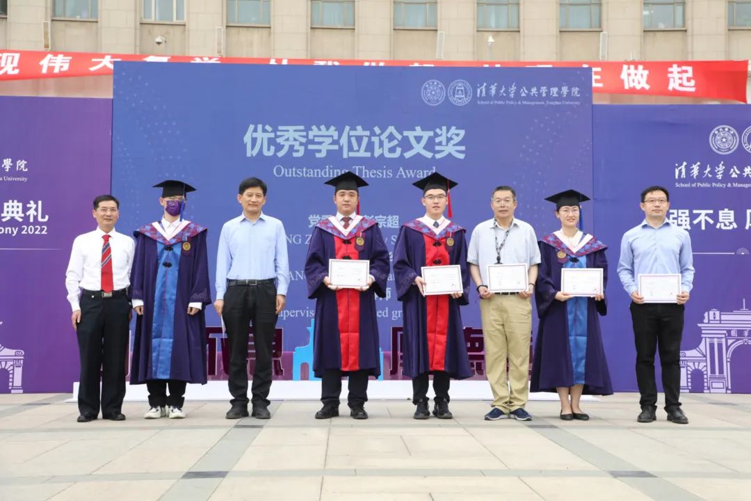 副院长王亚华宣读优秀学位论文奖获得者及指导教师名单。共有15位同学获评清华大学优秀学位论文,30位同学获评公共管理学院优秀学位论文。党委书记彭宗超和获奖学生导师为同学颁发证书。
