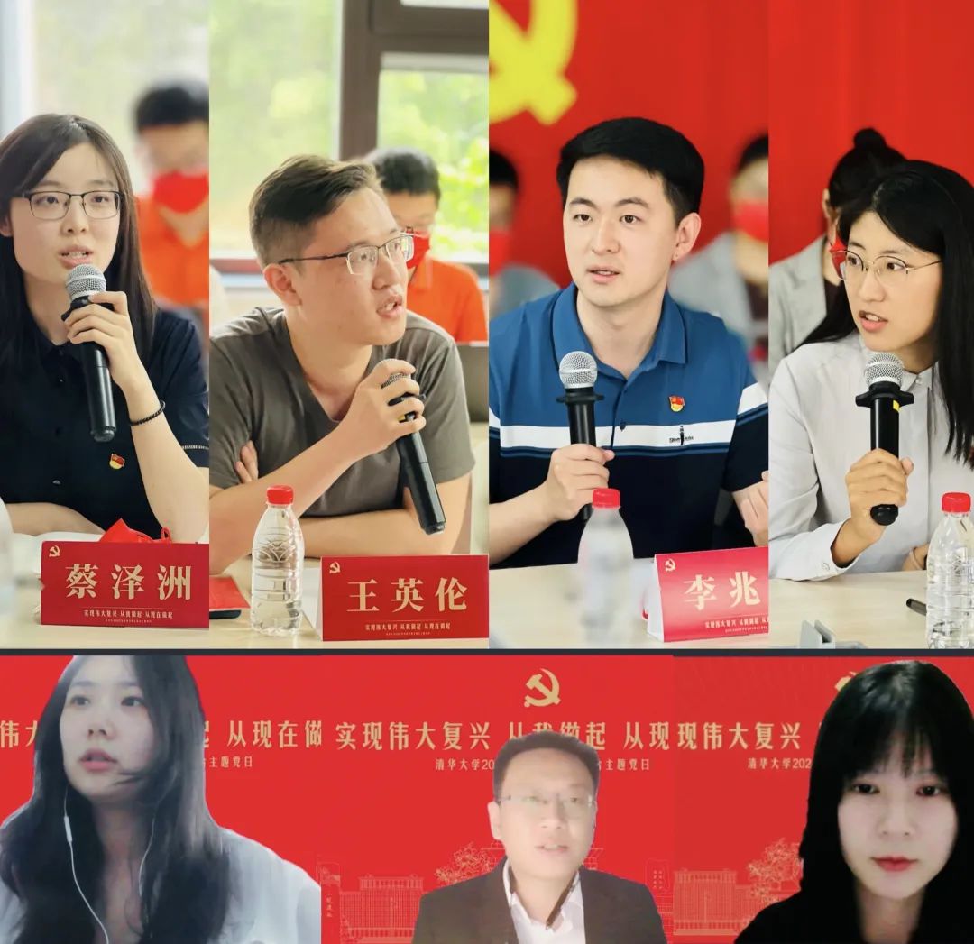 主题党日会上,来自不同党支部的毕业生代表一同重温清华传统与清华精神,分享自己在清华园的求学故事和感悟。