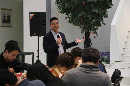 吕孝礼、马亮、沈永东、刘鹏、王学军、王欢明、臧雷振、蓝志勇(从上到下)进行交流分享