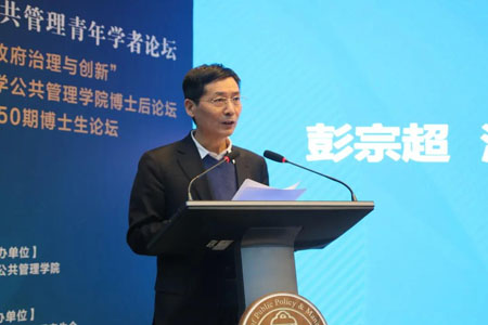 彭宗超为论坛致辞。首先,他代表清华大学公共管理学院向线上线下老师和同学的到来表示衷心的欢迎和感谢。他表示,本论坛致力于为公管学者提供交流平台,服务共同体建设,同时也为激发在校研究生的兴趣。论坛下设数字时代的政府治理与创新、治理现代化与危机管理、资源环境政策与新兴技术、乡村振兴与社会组织、基层治理与基层实践等分论坛,同时设有职业发展交流会和期刊圆桌对话。他指出,今年是十分特殊的一年,我们同时面临疫情防控的压力和经济复苏的挑战,今年也是中国共产党成立100周年,这是一个需要理论且一定能够产生理论的时代,一个需要思想且一定能够产生思想的时代。最后,他祝愿各位青年学者尽情分享、相互交流、有所收获。