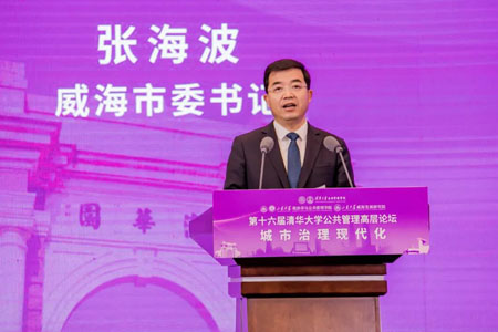 张海波用海洋、创新、生态、开放四个关键词介绍了威海市基本情况,并表示治理现代化是新时期国家治理的重要课题。2018年6月,习近平总书记亲临威海视察,殷切嘱托“威海要向精致城市方向发展”,为解决城市治理中的难题指明了方向、提供了路径。近年来,威海把精致作为推进城市治理现代化的最大特色,在探索实践中深刻体会到,精致城市和城市治理现代化二者相辅相成、相互促进,精致城市代表了城市治理现代化的方向和标准,体现了城市治理现代化的方法路径。威海将认真落实习近平总书记关于城市治理现代化的重要指示精神,吸收借鉴各位领导、专家、校友的真知灼见,拿出“绣花”功夫,运用更现代的理念、更科学的方式、更管用的手段,推动城市治理体系和治理能力现代化,让城市更加和谐、更加宜居、更加幸福。