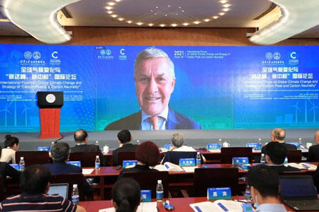 世界资源研究所高级顾问、联合国前副秘书长埃里克·索尔海姆(Eric Solheim)以“碳中和愿景之下,如何确保公平转型”为题作线上主旨发言。他谈到,目前世界主要大国都在采取积极行动,大力发展太阳能和风能等可再生能源项目,推动绿色转型,努力实现碳中和目标。如何确保公平转型,找到世界各国实现共同繁荣发展的方式,实现合作双赢是需要重点关注的问题,为此各方要做出更多努力。充分考虑不同地区在低碳转型过程当中所面临的不同挑战,确保实现协同转型和绿色发展;加大培训力度,使更多劳动力具备低碳转型过程当中所需岗位的关键技能,同时发展生态旅游业等相关的新兴产业;传统的石油化工能源产业应充分利用过去积累的技术领域的重要经验,在发展可再生能源和绿色能源方面发挥作用;投资者和广大消费者需充分意识到绿色转型的重要性,共同形成合力。最后,他希望中国和欧盟等更多分享在低碳转型方面的经验,使世界各国的绿色转型更顺利、更公正。