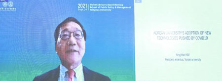 外方委员韩国延世大学前校长、韩国SK电信董事会主席金用学(Yong-Hak Kim)就韩国高等教育如何应对新冠肺炎疫情影响作发言。他表示,高校学生期望获得多元校园体验并建立社交网络,但疫情下学生无法在现实课堂中学习,限制了其获得相关经验和培养社交技能的可能性。因此,高校必须及时采取新的教育技术以适应这一变化,建立虚拟现实的多元课堂环境,学生在虚拟课堂和校园环境中可以实现人与人之间的交流。此外,由于新冠肺炎疫情影响,高校不得不适应降低成本的现实需求。他最后谈到,信息技术应用在帮助高校有效过渡的同时,在线教育平台和人工智能也对实体高校的主体性提出了新挑战。