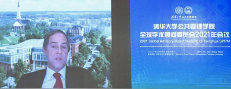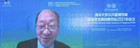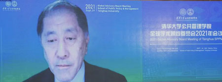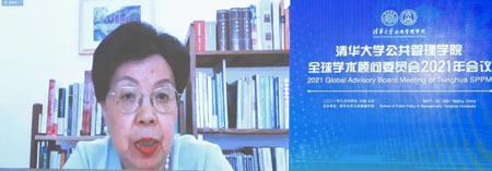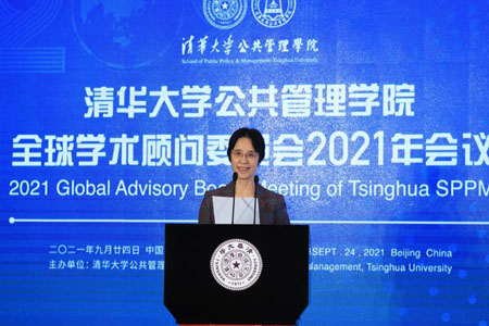 中方委员世界卫生组织荣誉总干事、清华大学万科公共卫生与健康学院创始院长陈冯富珍(Margaret Chan)围绕公共治理和教育现代化发言。她认为,新冠肺炎疫情展示了人类社会的脆弱性,国际社会呼吁全球合作团结和更好的治理,而良好治理需要体现公平、负责、透明等重要原则。她提出,我国已进入全面建设现代化社会主义国家新阶段,为中国人民提供良好治理比以往更加重要。清华大学和公共管理学院要培养德智体美劳全面发展的人才和公平、正义、良好治理的领军者,使学生充分使用他们所学习的知识技能,充分承担在公共政策制定和相关事务中应尽的责任,在贫困治理、公共健康、减缓气候变化带来的诸多影响等方面,发挥他们应有的作用。