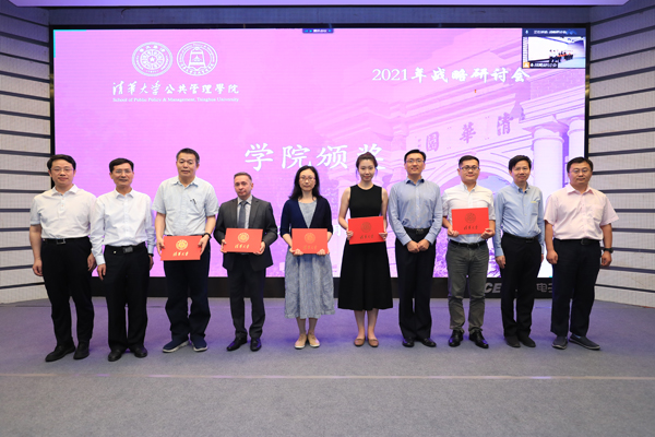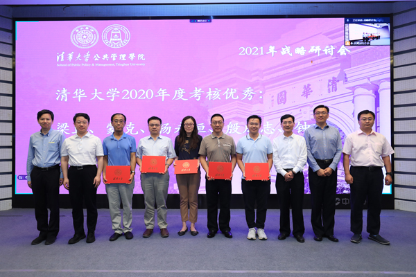 颁奖环节,学院向获得“清华大学2020年度教学优秀奖”的韩廷春、贾西津、杨永恒、钟玮、周源老师提前表示祝贺;对“清华大学公共管理学院2020年度教学优秀奖”的获奖老师,以及获得“清华大学2020年度考核优秀”和“清华大学公共管理学院2020年度考核优秀”的教师和行政职员进行了表彰。学院领导班子成员依次为获奖教职工颁奖并合影。