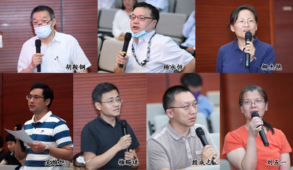 会议在上下午分别安排了分组讨论环节。上午按常设研究所分组,重点讨论学科建设问题。政治与公共政策研究所所长刘志林、政府管理与创新研究所所长于安、国际发展与全球治理研究所所长楚树龙、社会组织与社会治理研究所党支部书记郑振清代表四个小组在大会交流环节汇报分组讨论情况,分别就学科聚焦、人才培养、高质量发表、学院现状与未来发展的关系、教师个人与学院发展的关系、基础研究与应用研究的关系、教师研究的共性与个性等问题的讨论情况向大会做了汇报。学院教师杨永恒、胡鞍钢、蓝志勇、王有强、吴维旭、梅赐琪、殷成志、刘五一,院长助理(挂职)柳杰艳等通过现场和线上的方式在大会交流环节参与讨论。