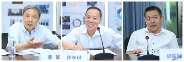 接下来,本课题的领衔专家进行发言和交流。中国社会科学院国家高端智库首席专家、学部委员蔡昉,中国宏观经济研究院首席专家、中国社会科学院研究生院教授陈东琪,清华大学国情研究院院长、公共管理学院教授胡鞍钢,从整体思路、研究方法、重点难点、特色创新、协调方式等方面进行讨论,为本课题的顺利开展提供指导和方向。