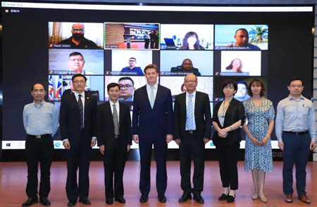 陈江和基金会秘书长伍伟在活动中致辞。他首先向艾德明爵士和公管学院表达感谢,并介绍了陈江和基金会的宗旨以及清华大学“一带一路”国际公共管理硕士项目的发展目标。他认为,新冠肺炎疫情凸显了合作与贡献的意义,更表明了人才培养至关重要。清华大学作为中国最好的高等学府,为“一带一路”国家培养高端人才贡献了重要的力量。
