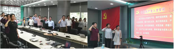 最后,在三位党支书的领誓下,三个党支部的党员集体重温了入党誓词。在心潮澎湃的热烈气氛中,政策所教工党支部与博16、博18党支部联合举办的党员政治生日活动圆满结束。