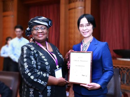 清华公管学院院长江小涓为恩戈齐·奥孔约-伊韦阿拉颁发顾问委员聘书