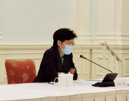 图为香港特首林郑月娥讲话
