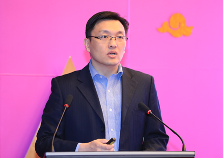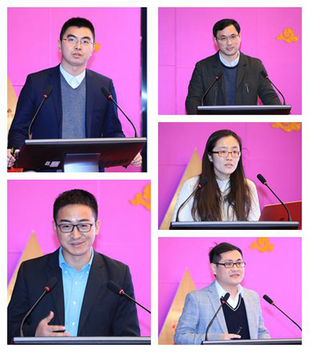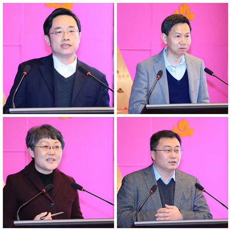 从左到右,从上到下:王亚华、谢矜、邓国胜、周绍杰做述职汇报