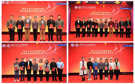2020年度,学院多位师生在疫情防控、在线教学、咨政建言、抗疫捐助等方面做出了突出贡献,经学院党政联席会提议、党委会审议,决定表彰清华大学公共管理学院抗击新冠肺炎疫情咨政建言奖、公共服务优秀组织奖、公共服务优秀支撑奖、爱心捐助奖共30名先进个人。会上,彭宗超宣读表彰决定,江小涓为获奖师生颁发荣誉证书。