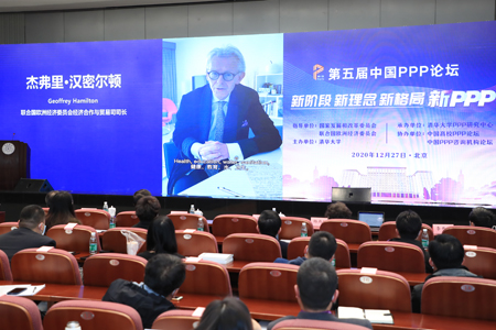 杰弗里·汉密尔顿在视频致辞中对第五届中国PPP论坛的成功召开表示祝贺。他指出,联合国欧洲经济委员会专家团队历时三年,开发出了PPP项目评估工具,用于评估基础设施项目是否符合联合国可持续发展目标。该评估工具既有利于践行以人为本的PPP模式,也有利于后疫情时代世界经济复苏。他期待与清华大学PPP研究中心开展合作,共同推广这一评估工具,助推联合国可持续发展目标。