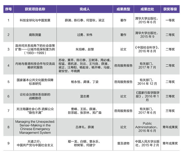 近日,教育部正式公布了第八届高等学校科学研究优秀成果奖(人文社会科学)获奖名单,我院9项成果获奖。获奖成果比前几届有明显增加,再创历史新高,成果质量和获奖等级较以往有很大提升,其中一等奖1项、二等奖4项、三等奖2项、青年成果奖2项。薛澜团队的著作《科技全球化与中国发展》获得一等奖,实现学院在该奖项的历史性突破。