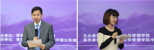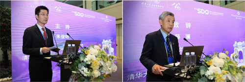 朱俊明主持论坛(左) 薛澜致辞(右)