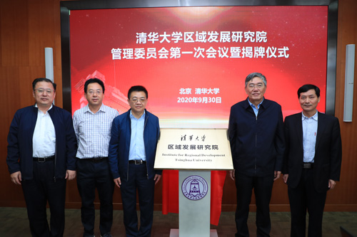 2020年9月30日,清华大学区域发展研究院(以下简称“研究院”)管理委员会第一次会议暨揭牌仪式在学院举行。会议由清华大学副校长、清华大学区域发展研究院管理委员会主任彭刚主持。全国政协常委、经济委员会副主任、中央财经领导小组办公室原副主任、清华大学中国发展规划研究院院长杨伟民,清华大学副秘书长、上海清华大学国际创新中心主任王涛,清华大学智库中心主任苏竣,清华大学公管学院党委书记彭宗超等管委会委员(或代表)出席会议并为研究院揭牌。