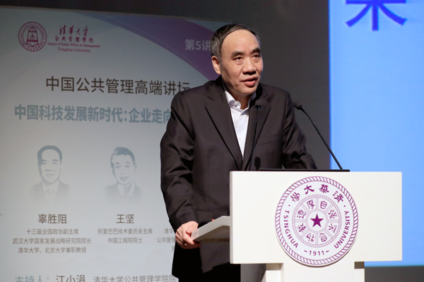 会见后,辜胜阻、王坚、薛澜出席中国公共管理高端讲坛第五讲,围绕“中国科技发展新时代:企业走向创新前沿”进行了主题分享、圆桌对话和互动交流。