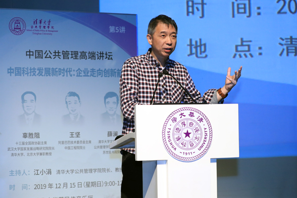 12月15日上午,由清华大学公共管理学院主办的中国公共管理高端讲坛第五讲在清华大学蒙民伟音乐厅举行。十三届全国政协副主席、民建中央常务副主席辜胜阻,阿里巴巴技术委员会主席、中国工程院院士王坚,清华大学文科资深教授、公共管理学院学术委员会主任、苏世民书院院长薛澜应邀出席讲坛。活动由清华大学公共管理学院院长江小涓教授主持。