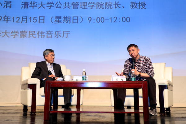 在对话环节,薛澜与王坚就“跨界职业选择”“创新成功的必然性与偶然性”“新技术条件下政府及企业边界”等问题进行了充分交流。薛澜指出,在新的技术条件下,企业和政府的边界开始发生变化,很多平台在社会治理中也扮演着越来越重要的角色,而且在某些领域做得也非常有效,比如一些平台引入的大众评审机制,但另一方面也可能模糊了政府和企业在治理中的边界,需要在未来实践中予以关注和探索。在谈到创新的成功因素时,他指出,创新的道路充满不确定性,想让创新真正在全国乃至全球成为普遍现象,需更进一步研究完善创新的体制机制。
