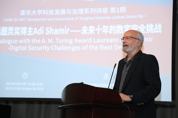 2019年10月25日晚,由清华大学公共管理学院主办、清华大学科技发展与治理研究中心(以下简称“科技治理中心”)承办的“清华大学科技发展与治理系列讲座第1期:对话图灵奖得主Adi Shamir——未来十年的数字安全挑战”在清华大学信息科学技术大楼(FIT楼)二层多功能厅成功举行。