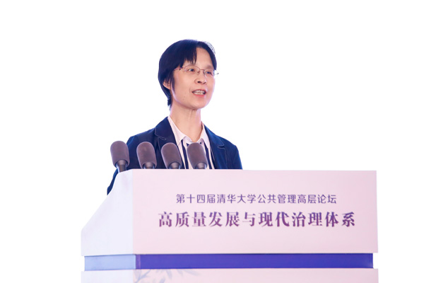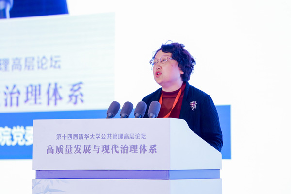 四川大学公共管理学院党委书记姜晓萍代表兄弟公共管理院校致辞。她指出,清华大学公共管理高层论坛已成功举办了十四届,每一届都有创意,每一届都有欣喜,每一届主题都高度关注国家重大战略部署,每一年研讨都深度解读社会热点问题,已经成为中国公共管理界的一个知名品牌、一张靓丽名片。她强调,总结提炼能够体现“中国立场、中国智慧、中国价值”的公共管理理论与实践模式是我们共同的使命。