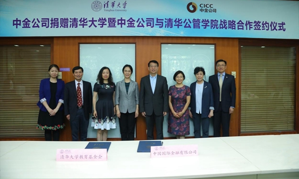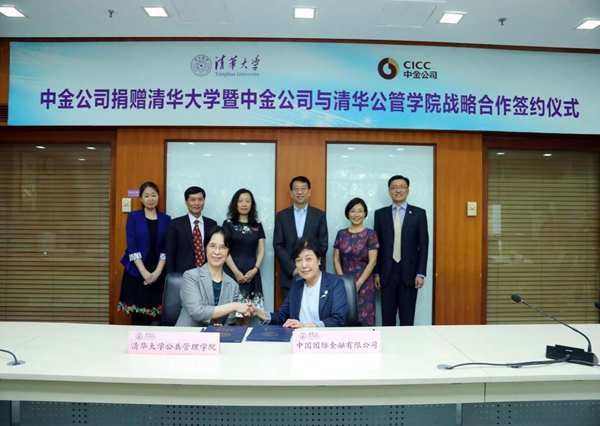 2019年6月12日,中国国际金融股份有限公司(以下简称“中金公司”)捐赠清华大学暨与清华大学公共管理学院(以下简称“清华公管学院”)战略合作签约仪式在公管学院举行。中金公司首席运营官楚钢,党委书记杨新平,业务支持协调部负责人、董事总经理冯丹云,以及清华公管学院院长江小涓、副院长朱旭峰,教育基金会秘书长袁桅等出席仪式。仪式由清华公管学院党委书记彭宗超主持。
