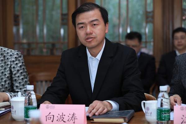 向波涛在致辞中代表学校对与会领导和专家表示热烈欢迎,对各位领导专家长期以来对学校各方面工作的关心与支持表示衷心感谢。他指出,高校智库是中国特色新型智库体系中的重要组成部分,在战略研究、政策建言、人才培养、舆论引导、公共外交等方面发挥着不可替代的作用。他希望与会领导和专家积极建言献策,探讨智库建设与学科建设、人才培养的融合路径,探索高校智库建设的清华模式,为学校的综合改革和“双一流”建设做出新的更大的贡献。