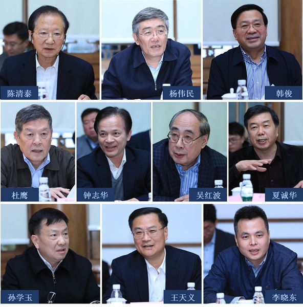 全国政协副主席、民建中央常务副主席、清华大学公共管理学院兼职教授辜胜阻,国务院发展研究中心原党组书记兼副主任、公管学院首任院长陈清泰,中央财经委员会办公室原副主任、清华大学中国发展规划研究院院长杨伟民,中央农村工作领导小组办公室副主任、农业农村部党组副书记兼副部长、清华大学中国农村研究院副院长韩俊,国务院参事、国家发展和改革委员会原副主任杜鹰,中国工程院副院长、清华大学中国工程科技发展战略研究院常务副院长钟志华,联合国前副秘书长、清华大学全球可持续发展研究院院长吴红波,中央维稳办原副主任、清华大学中国社会风险评估研究中心主任夏诚华,国家民委专职委员(副部长级)、清华大学公共管理学院兼职教授孙学玉,中国光大国际有限公司总裁、清华大学政府和社会资本合作研究中心主任王天义,中国互联网络信息中心原主任、清华大学互联网治理研究中心主任李晓东等,围绕高校智库建设,从新时代高校智库的定位和使命、智库建设与学科建设和人才培养的深度融合、智库在“讲好中国故事”中的功能和作用、清华多学科优势转化为独特智库优势、建立高校智库与政府部门之间的人员交流机制、完善和健全智库成果报送渠道、统筹形成清华智库的整体品牌等方面进行了交流发言,并就智库建设优势如何转化为学科建设、人才培养和理论创新等方面的优势提出了意见和建议。