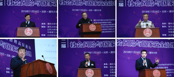 论坛主旨发言阶段,清华大学公共管理学院党委书记、清华大学中国社会风险评估研究中心主任彭宗超,南京大学社会风险和公共危机管理研究中心主任童星,国际关系学院国家安全教研室主任刘跃进,西安交通大学朱正威,清华大学中国社会风险评估研究中心专委会委员孔祥涛和清华同方股份有限公司总裁助理兼法务部总经理苏云鹏等6位专家先后做了主旨报告,从国家安全的战略高度,兼蓄理论与实践的不同视角,深刻阐述了该领域的前沿学术成果与治理经验。主旨报告由清华大学中国社会风险评估研究中心主任、公管学院特殊聘任教授夏诚华主持。