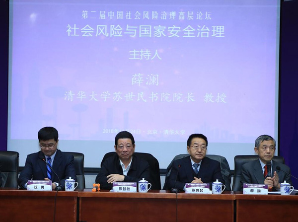 清华大学党委副书记过勇,十三届全国政协委员、社会和法制委员会副主任、中国友谊促进会理事长陈智敏,十二届全国人大常委会委员、法律委员会副主任委员、中国法学会副会长张鸣起出席论坛开幕式并分别致辞。他们充分肯定了论坛和本次议题的重要战略意义,并对社会风险与国家安全治理现代化的未来发展做出了展望。论坛开幕式由清华大学中国社会风险评估研究中心专委会主任、公管学院教授薛澜主持。