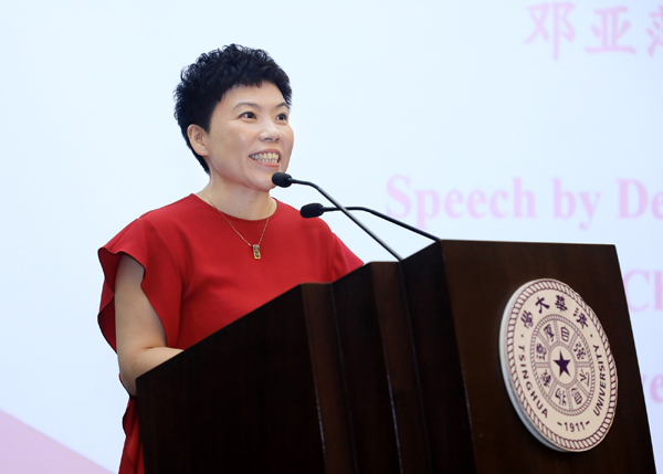 特邀嘉宾清华校友、乒乓球奥运冠军邓亚萍分享了自己来清华学习的有趣经历。她提到自己在清华的学习之路并非一帆风顺,她通过自己不断调整,很快适应了在清华的学习生活,收获了无限的精彩。最后,她鼓励同学们学习之余不忘强身健体,争取“为祖国健康工作‘七十年’”。