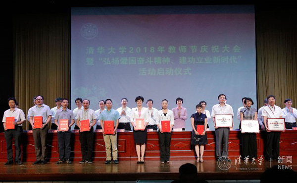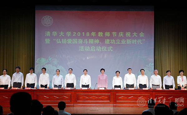9月7日下午,在第34个教师节即将来临之际,清华大学在大礼堂举行教师节庆祝大会,表彰在教书育人等各项工作中取得突出成绩的教师和集体,学习新时代优秀知识分子的先进事迹。校领导邱勇、陈旭、姜胜耀、薛其坤、吉俊民、杨斌、李一兵、王希勤、郑力,校党委常委、工会主席王岩,校党委常委、组织部部长许庆红出席会议。