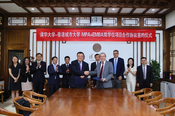 8月27日,清华大学-香港城市大学MPA+EMBA双学位项目合作协议签约仪式在清华大学举行,清华大学副校长杨斌、香港城市大学副校长叶豪盛等出席签约仪式。