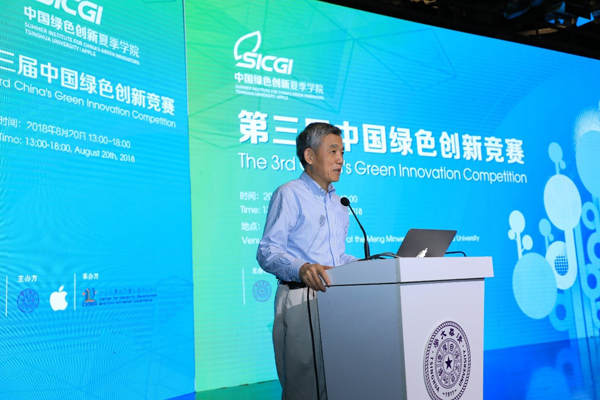 薛澜教授做总结致辞,他向竞赛获奖的团队表示祝贺,对中国绿色创新夏季学院的支持单位生态环境部、合作伙伴苹果公司、各实习地的基层环保部门以及所有曾经关心和帮助过本项目的各界专家教授表示衷心的感谢。薛澜教授嘱咐学员们将来无论从事哪个行业、走向哪个岗位,都能够不忘初心,始终前行在绿色创新者的征途上。最后,薛澜教授希望SICGI成为一个交流与合作的平台,能启发更多人从事绿色创新、关注绿色创新,共同建设更为美好的地球家园。