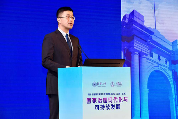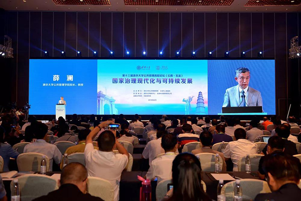 8月18日上午,以“国家治理现代化与可持续发展”为主题,由清华大学公共管理学院和云南省玉溪市人民政府联合主办的第十三届清华大学公共管理高层论坛在玉溪开幕。开幕式上,云南省人民政府副秘书长蒋兴明、清华大学党委副书记过勇依次致辞,清华大学公共管理学院院长薛澜宣布启动“清华——玉溪公共部门人才发展基金”。