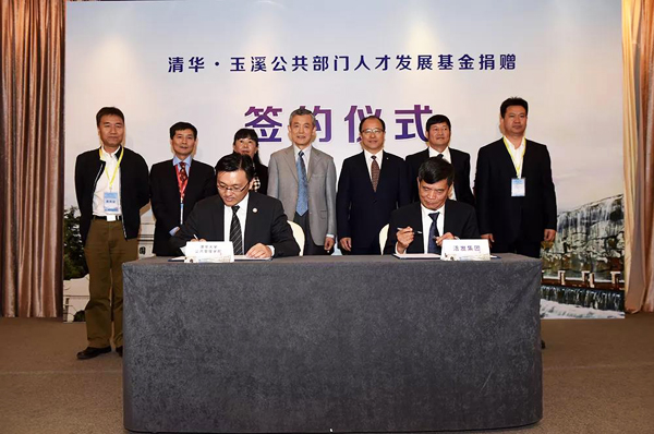 开幕式前,云南省活发集团与清华大学公共管理学院举行了“清华——玉溪公共部门人才发展基金”捐赠意向签约仪式,该基金将主要支持落实清华大学公共管理学院与玉溪市合作备忘录的主要事项、支持清华大学公共管理学院的建设和发展,并提升玉溪市公共部门人才队伍的能力和水平。