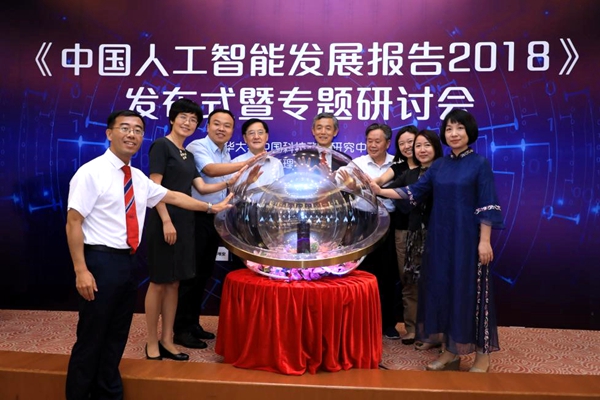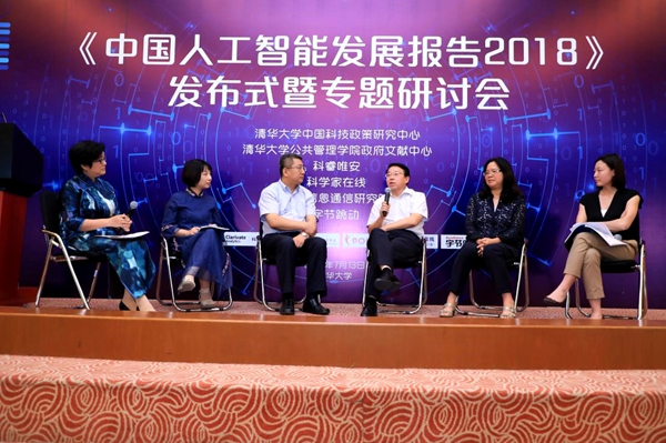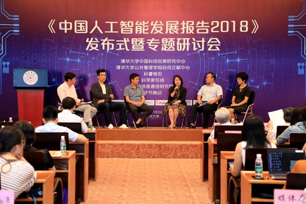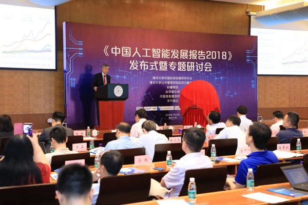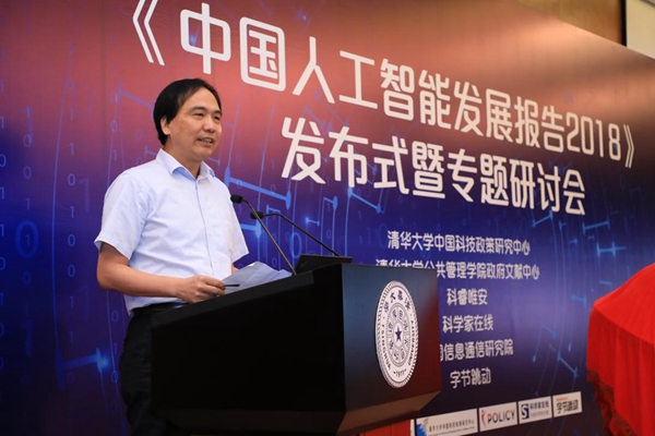 7月13日,《中国人工智能发展报告2018》发布会暨专题研讨会于清华大学主楼接待厅举行,清华大学科研院院长周羽致欢迎辞,中国科学院计算所原所长、中国计算机学会名誉理事长李国杰院士,国家科技部原党组成员、中国科技体制改革研究会理事长张景安作特邀报告,清华大学公共管理学院院长、清华大学中国科技政策研究中心主任薛澜详细介绍了报告内容。
