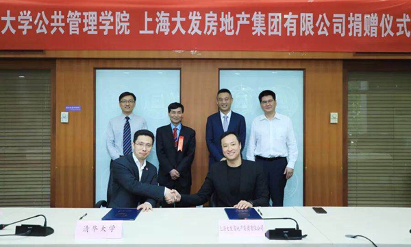 功存教育,义声长孚。29日下午,上海大发房地产集团有限公司与清华大学公共管理学院捐赠仪式在公管学院举行。清华大学教育基金会副秘书长赵劲松与上海大发房地产集团有限公司总裁葛一暘共同签署了捐赠协议。公管学院党委书记彭宗超、副院长朱旭峰、院长助理兼培训中心主任刘辉等学院领导和上海大发房地产集团有限公司执行总裁廖鲁江、总裁助理汪娅共同出席仪式。仪式由公管学院副院长朱旭峰主持。仪式上,朱旭峰和廖鲁江分别作了双方机构的介绍,彭宗超代表学院对上海大发房地产集团有限公司的大力支持表示感谢,他表示,清华公管在创建“双一流”的背景下,将不断做好对广大院友的服务工作,大发集团的支持具有非凡的战略意义。根据捐赠协议,上海大发房地产集团有限公司将支持设立“公共管理院友发展”基金,支持清华公管校友发展。