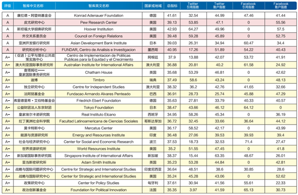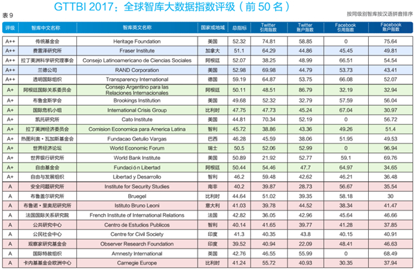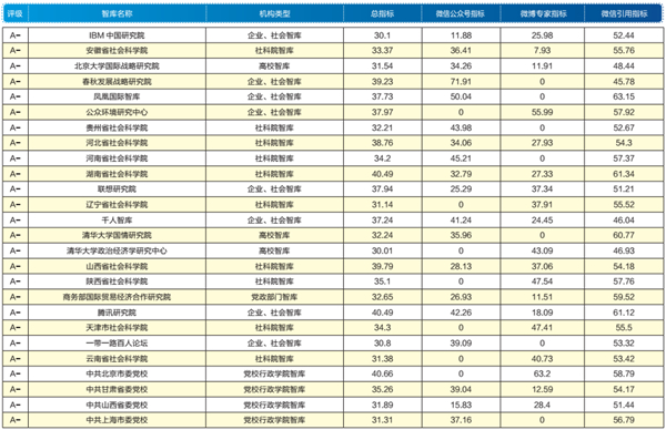 日前《清华大学智库大数据报告(2017)》由刚刚成立的清华大学公共管理学院智库研究中心发布(请在文末下载报告全文)。该报告分为《中国智库大数据报告》和《全球智库大数据报告》两部分,是国内智库评价机构首次通过大数据评价方法和社交大数据资源对智库活动进行的综合性评价与评级。报告采用具有客观、无偏、实时和大样本特点的大数据评价方法,通过对智库及其专家学术活动的大量无组织的痕迹数据进行回溯、追踪、提取和分析,从而对智库影响力进行客观评价。《清华大学智库大数据报告》突破了智库客观评价的技术瓶颈,提供了学界对智库建设和运作新的认识角度。