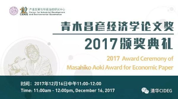 首届“青木昌彦经济学论文奖”旨在纪念斯坦福大学荣休教授、著名经济学家、清华大学产业发展与环境治理研究中心(以下简称“CIDEG”)学术委员会主席青木昌彦先生,由CIDEG与《比较》杂志联合主办。