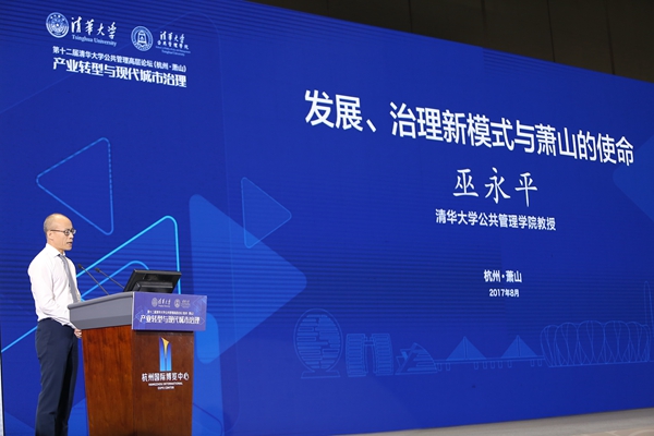巫永平在《发展、治理新模式与萧山的使命》主旨演讲中,表示,萧山已成为杭州市“拥江发展”战略的核心,同时面临城市化、城市治理、乡村治理三个任务,要在产业转型升级的过程中把模仿和创新结合起来,并在创新中不断探索,为解决中国问题提出萧山方案。