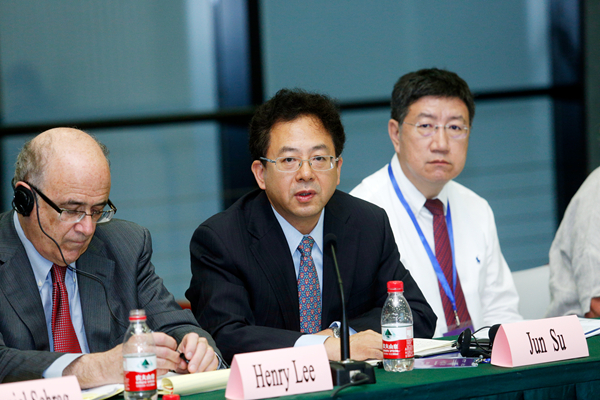 图为学术沙龙现场。左起:苏竣、亨利·李、丹尼尔·施拉格、简·朗、薛澜。常志东 摄