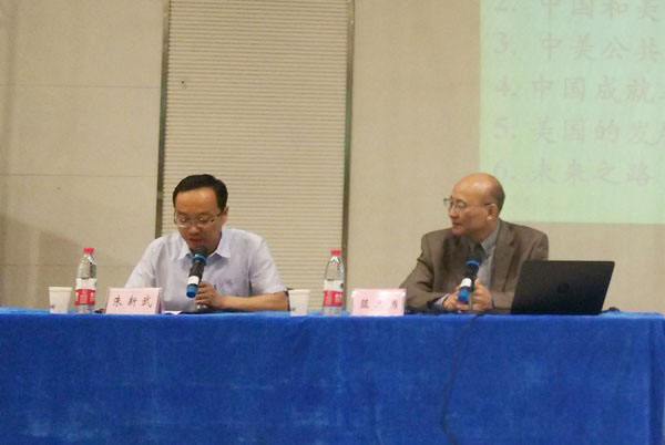 图为朱新武(左)主持讲座。